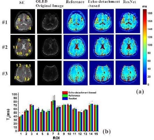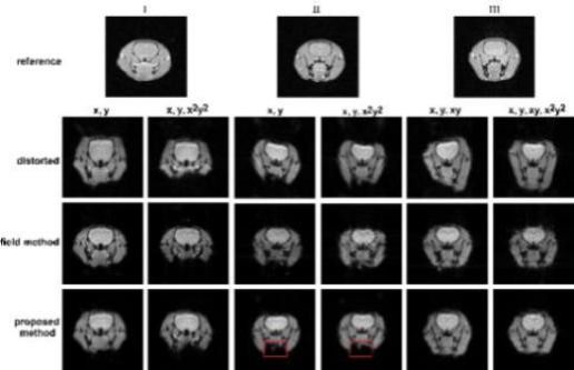 我们在深度学习与超快速磁共振成像方面的结合进行了深度研究,并取得许多重要成像。我们研究了基于深度学习的超快速多参数磁共振成像重建,并取得良好的效果,如图1所示。我们还研究了利用深度学习对磁共振成像进行无参考扫描的扭曲校正,如图2所示。