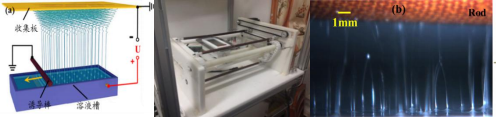 纳米纤维具有纳米纤维由于其优异的电学、力学、化学、光学特性和超高比表面积,在过滤、高性能传感器、生物骨架、药物传输与缓释和微纳米器件等领域有非常巨大的应用潜力和广阔市场前景。静电纺丝技术是一种简便易行、可以直接从聚合物及复合材料制备连续纳米纤维的方法,其制备的纳米纤维薄膜通常是以无纺布形式存在的,具有设备和实验成本较低、且适用于许多不同种类的材料的优点。但在静电纺丝技术实现产业化之前还有一些亟待解决的问题,其中的关键问题之一是静电纺纳米纤维的批量化制造。虽然国内外其他团队研究者开发了多喷头和无喷头装置,在一定程度上提高了静电纺丝生产纤维效率,但离大规模生产还有一段距离。