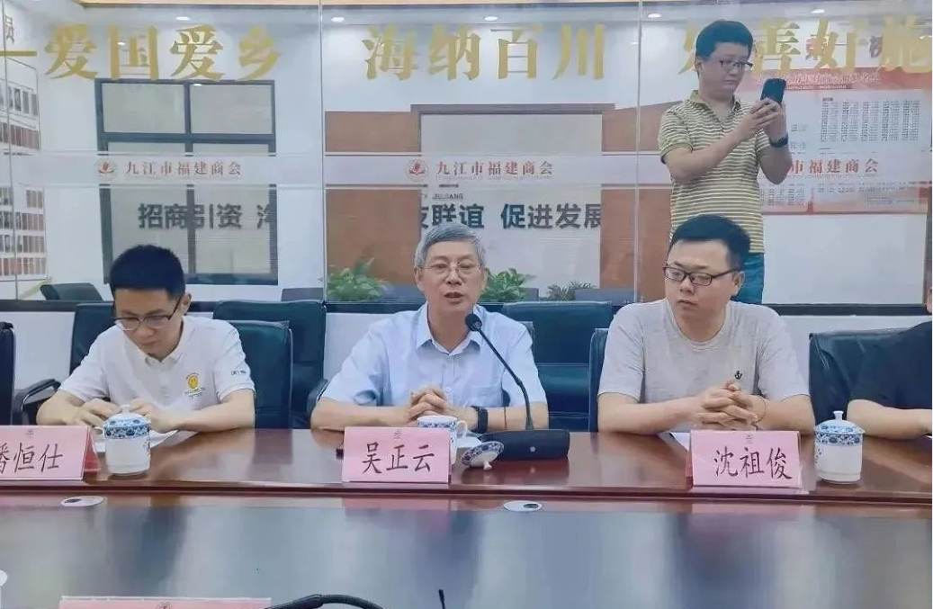 九江福建商会会长林钦平,常务副会长周仙、庄建明、林建山、高耀明,副会长黄金满、杨德,理事卓启阳、黄涛,办公室主任董克欣,副主任叶居斌,厦门大学九江研究院院长吴正云,外联经理沈祖俊、项目经理潘恒仕、工程师张会鸣出席签约仪式,商会党支部书记林阳华主持。