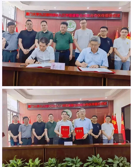5月19日上午,厦门大学九江研究院与九江福建商会战略合作伙伴签约仪式在九江市福建商会举行,共同开启全方位、多领域、深层次合作新篇章。