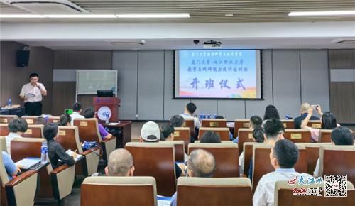 2023年8月19日,我院承接九江职业大学教学与科研能力提升培训班在厦门大学顺利开班。九江职业大学副校长戴丽梅,参加培训的二级院部领导、教研室主任、专业带头人等50人;厦门大学物理科学与技术学院党委书记李书平教授;我院院长吴正云教授等参加了开班仪式。开班仪式由我院科研部长李恒博士主持。