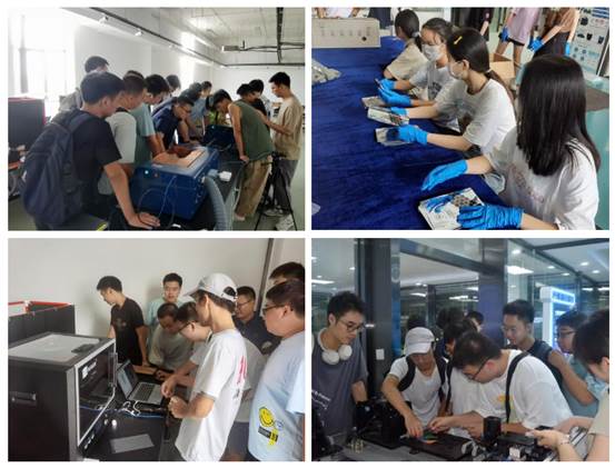 团组深入研究基地,体验科研魅力:一是听取研究院“江西省博士后创新实践基地”在站工作的孟照辉博士讲解锂离子电池的原理并实地演示制作过程,介绍了各种主要测试表征仪器及其使用方法;二是听取张纯淼博士讲解II-VI 族半导体外延及其探测器制作虚拟仿真实验并在其指导下上机实践;三是上手亲身体验研究院科研成果产业化“石墨烯空气净化宝生产”项目、研究院共性分析检测平台“高分辨SEM表面形貌表征”项目以及激光3D打印项目等。