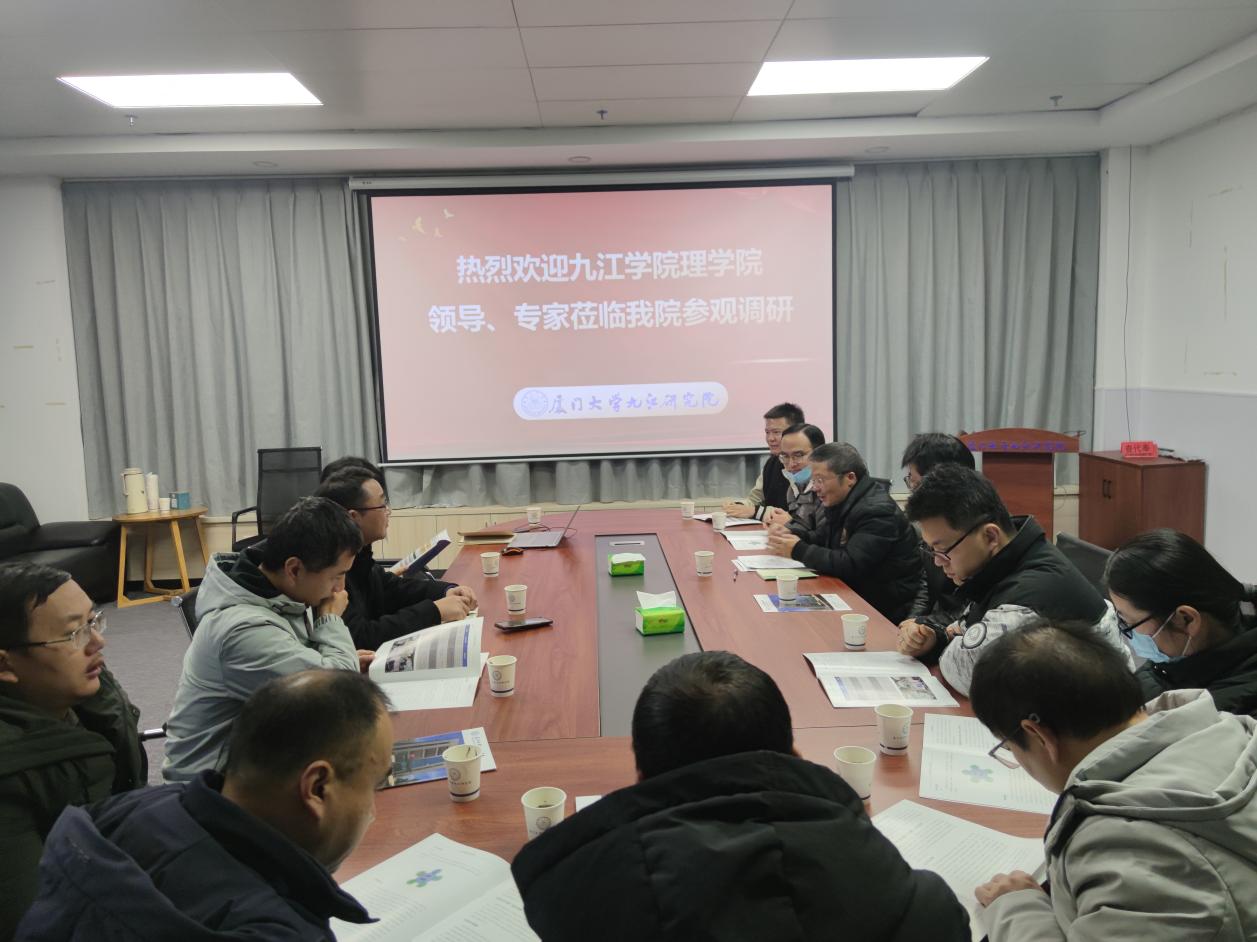 2023年12月26日上午,九江学院理学院副院长查代奉率博士团队共计十二人到厦门大学九江研究院(以下简称研究院)参观调研并开展科技交流,研究院科研团队负责人、技术骨干等参加交流活动。