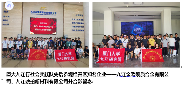 围绕2024年“青春为中国式现代化挺膺担当”社会实践活动主题及厦门大学社会实践重点方向和专项,7月27日至8月3日在厦门大学物理学系副主任吴志明教授带领下,由厦门大学物理科学与技术学院2021级物理学本科生46人组成的社会实践队赴赣,开启了2024年暑期九江行社会实践活动。厦门大学九江研究院(以下简称研究院)科研部部长李恒老师、技术部部长洪荣墩老师、工程师汪建元老师,以及厦门大学物理科学与技术学院辅导员宋子健老师随队陪同。
