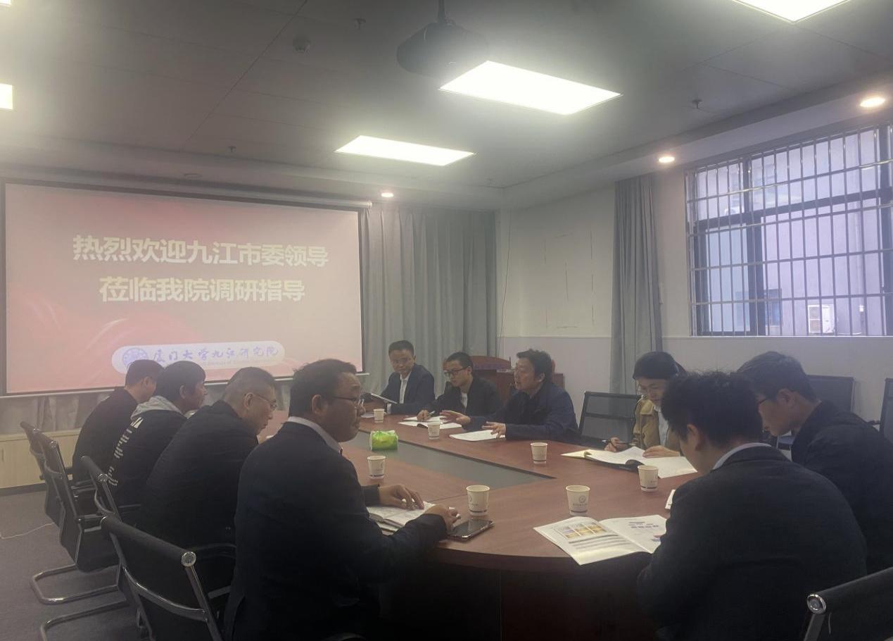 2024年11月14日上午,由九江市委办公室二级调研员欧阳星球率领的联合调研组来厦门大学九江研究院(以下简称研究院),就支持九江经开区高质量发展情况开展专题调研。研究院科研部长李恒陪同。
