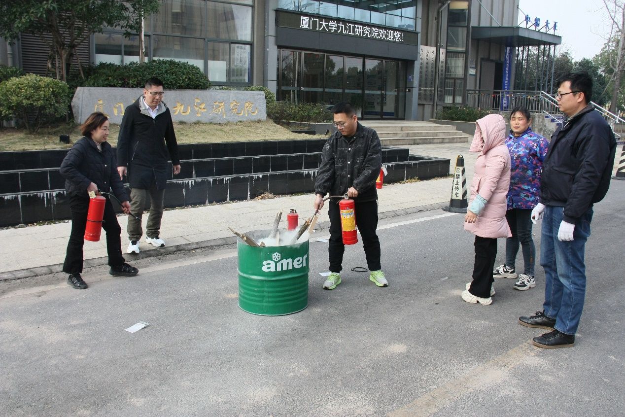 演练模拟了常见火情场景,在专业人员指导下,参演员工熟练操作灭火器材并正确消灭火情。九江市产业研究院与江西职业技术大学的参与,促进了产学研单位间的安全经验交流。